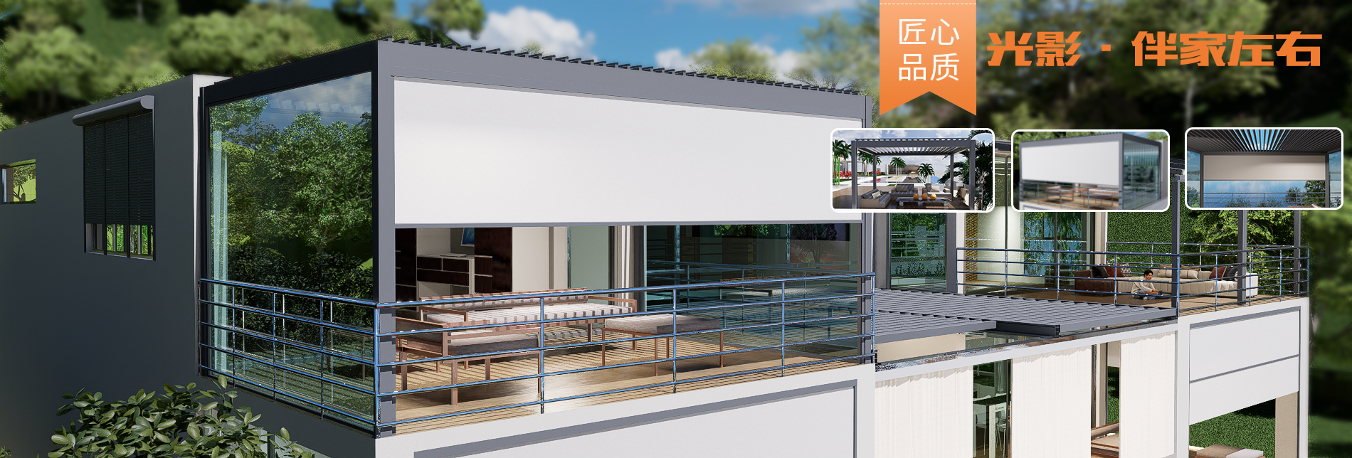 智能涼亭-立面防風卷簾